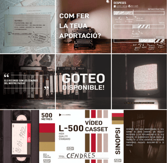 Per al projecte de Cendres, la meua tasca principal es va desenvolupar al perfil de xarxes d’Instagram. Part del projecte de gestió de producció d’una peça audiovisual passa també pel finançament d'aquest. En aquest cas, vàrem tractar de recrear per un costat, una caixa de cinta VHS amb certs detalls basats en el guió del curtmetratge. Per l’altre, la resta de publicacions es van pensar per explicar únicament el sistema de finançament de micromecenatge per aquelles persones interessades.